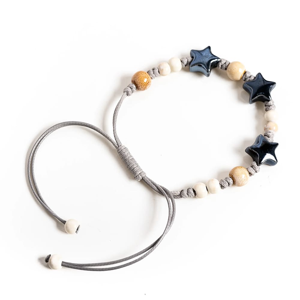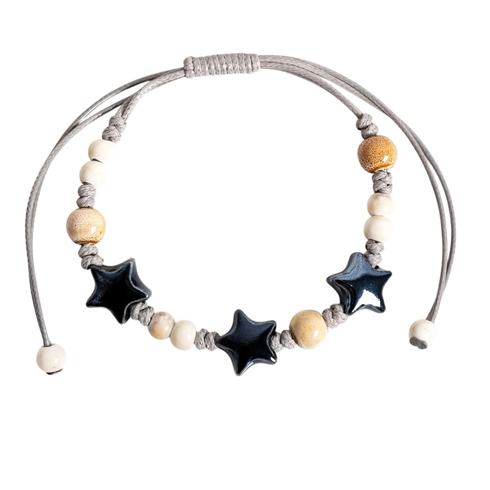 This aesthetic triple star beaded bracelet featuring three star shaped beads placed along a soft adjustable cord