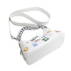 This aesthetic shoulder bag featuring multicolored indie-style floral appliqués on a structured faux leather base