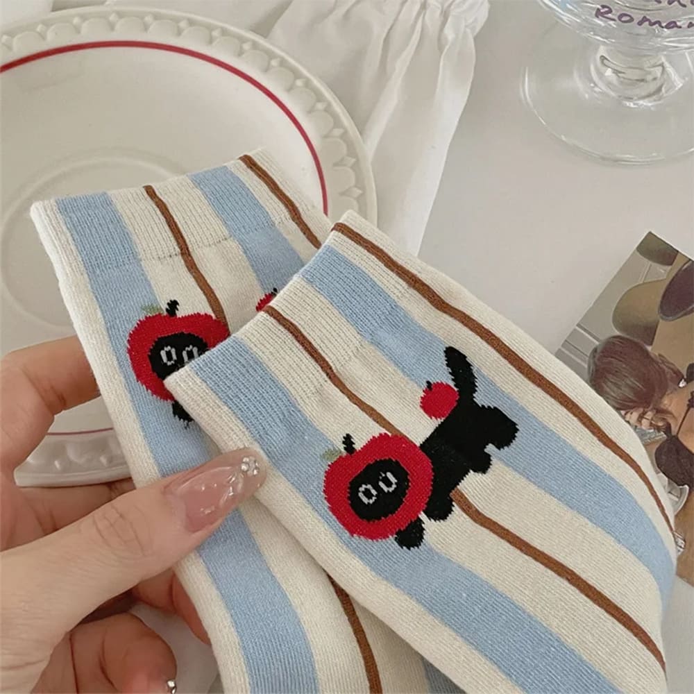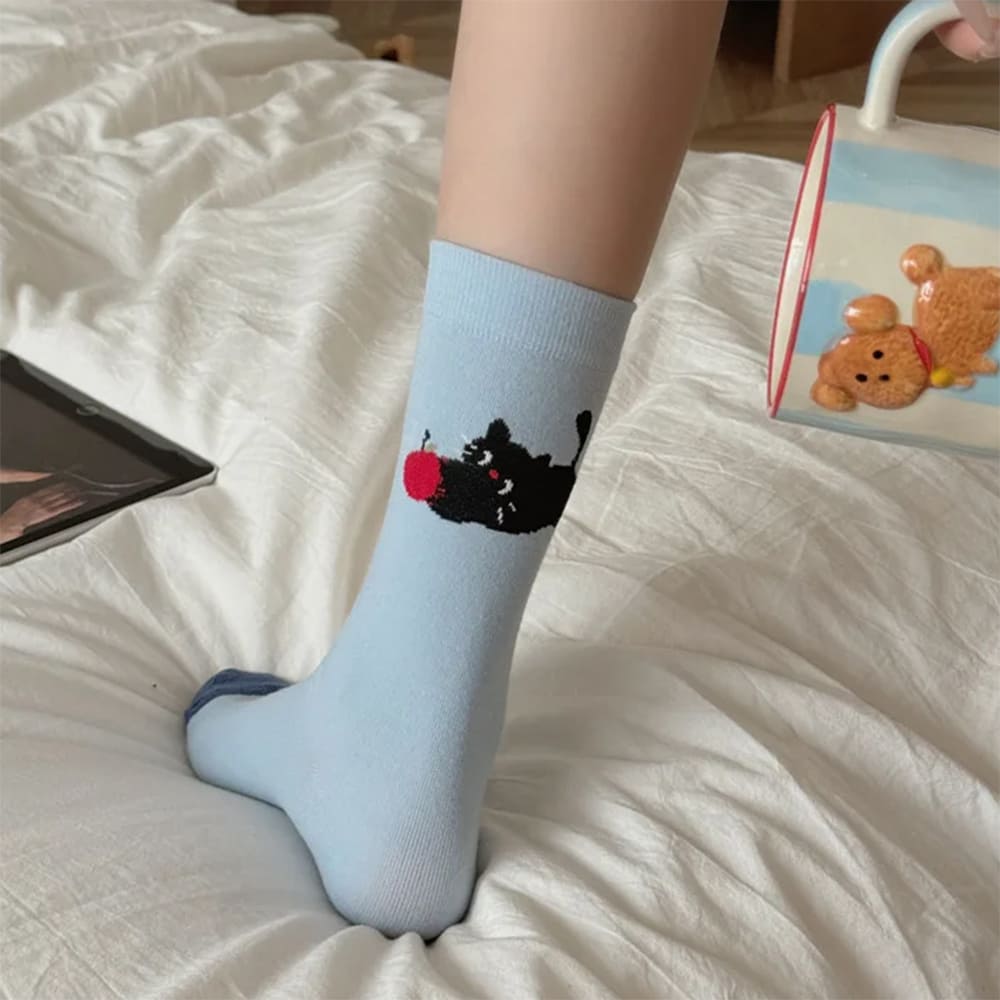 These aesthetic socks feature adorable cat graphics, pastel tones and soft textures