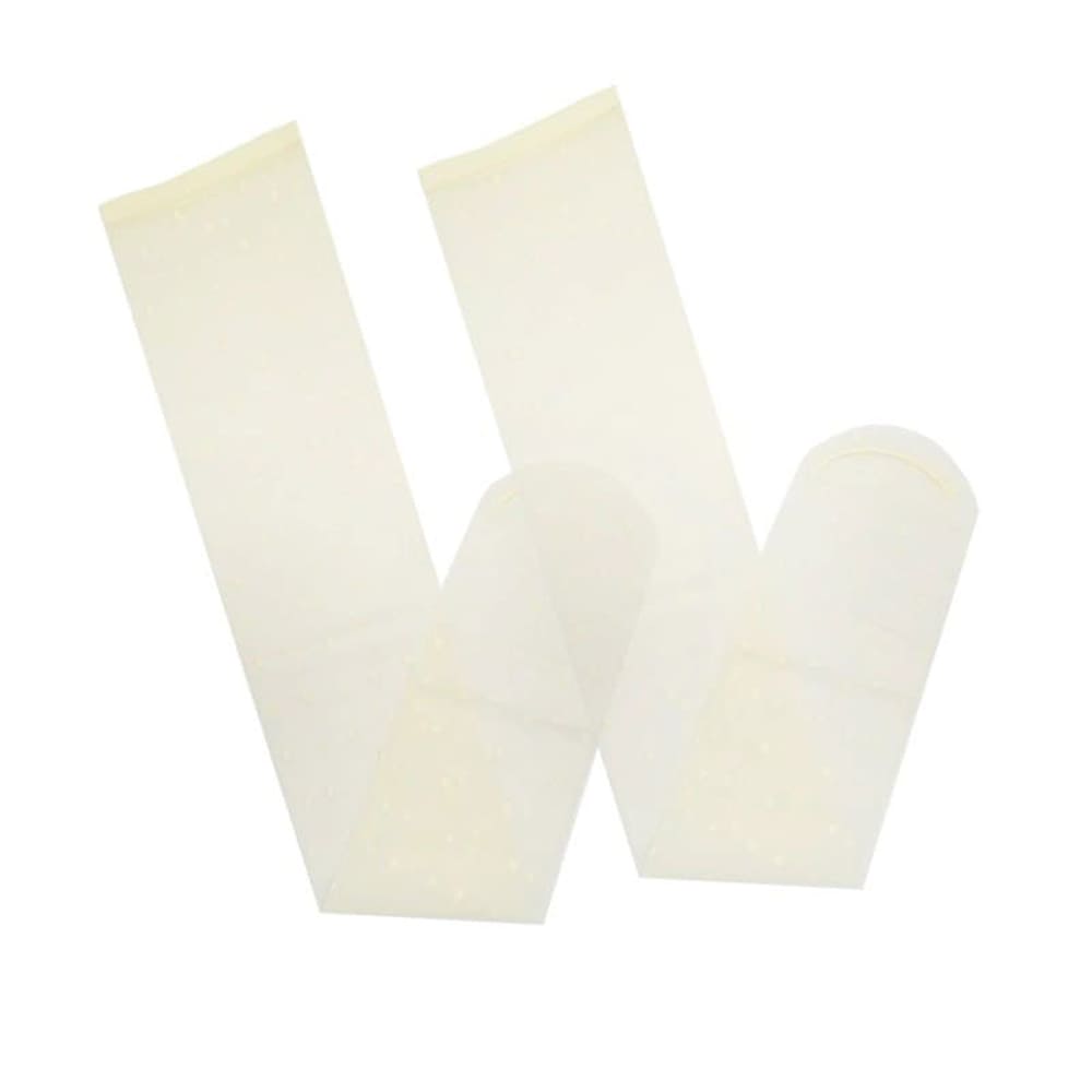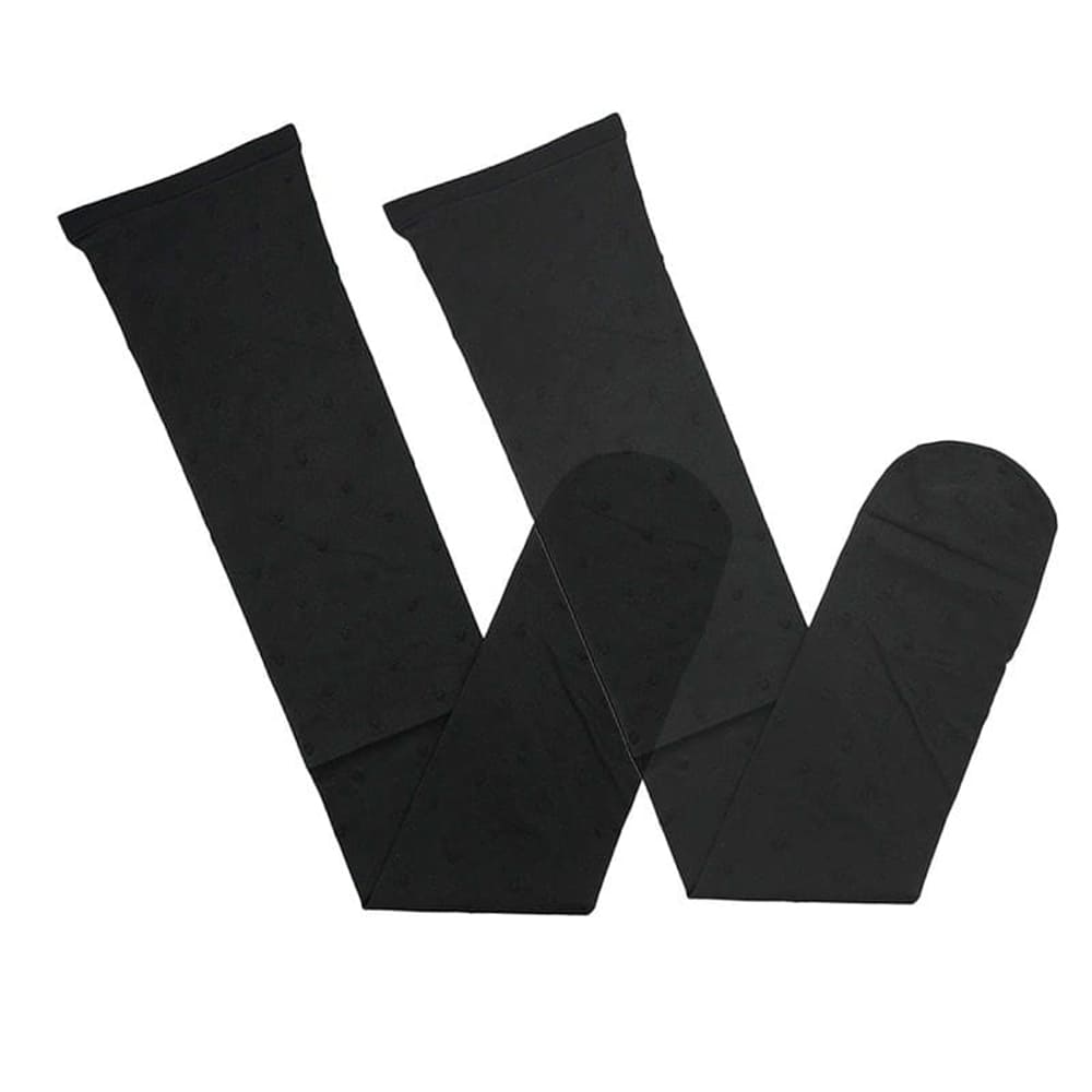 This aesthetic pair of over-the-knee stockings featuring sheer mesh fabric with black polka dots and a soft elastic band