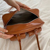 This vintage-inspired shoulder bag features a structured silhouette, spacious main compartment, and two front flap pockets