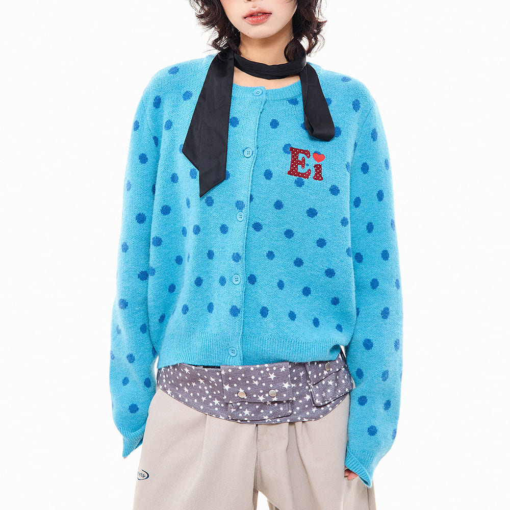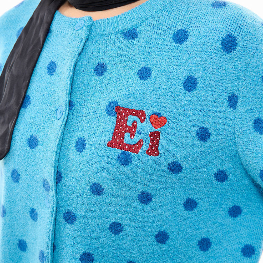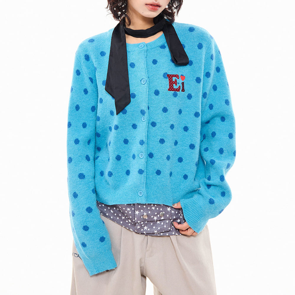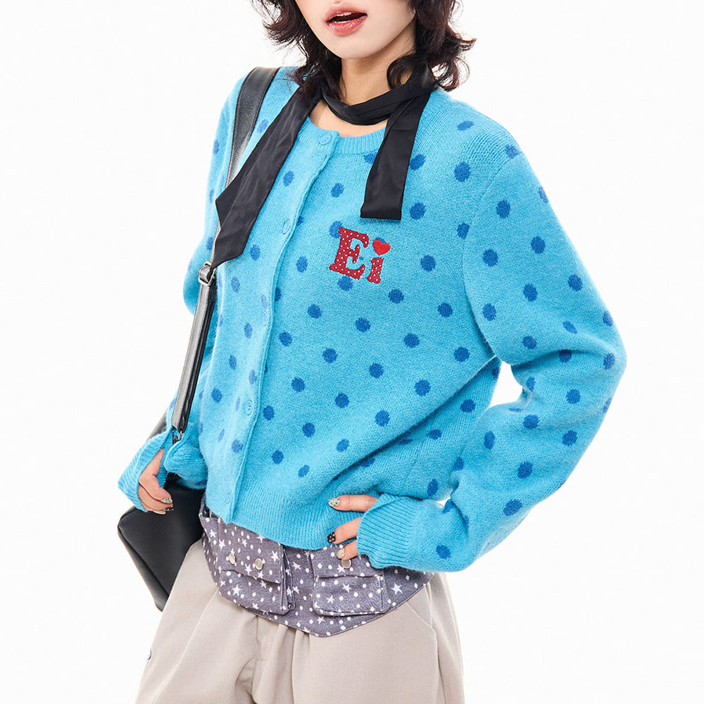 This Aesthetic French girl cardigan featuring a cropped fit and soft knit fabric with polka dot pattern. Designed with a button-up front, ribbed hem and cuffs, it includes a round neckline and small embroidered detail, available in pink and blue color options