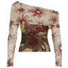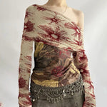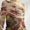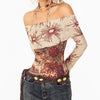 Sun Print Mesh Off-Shoulder Top
