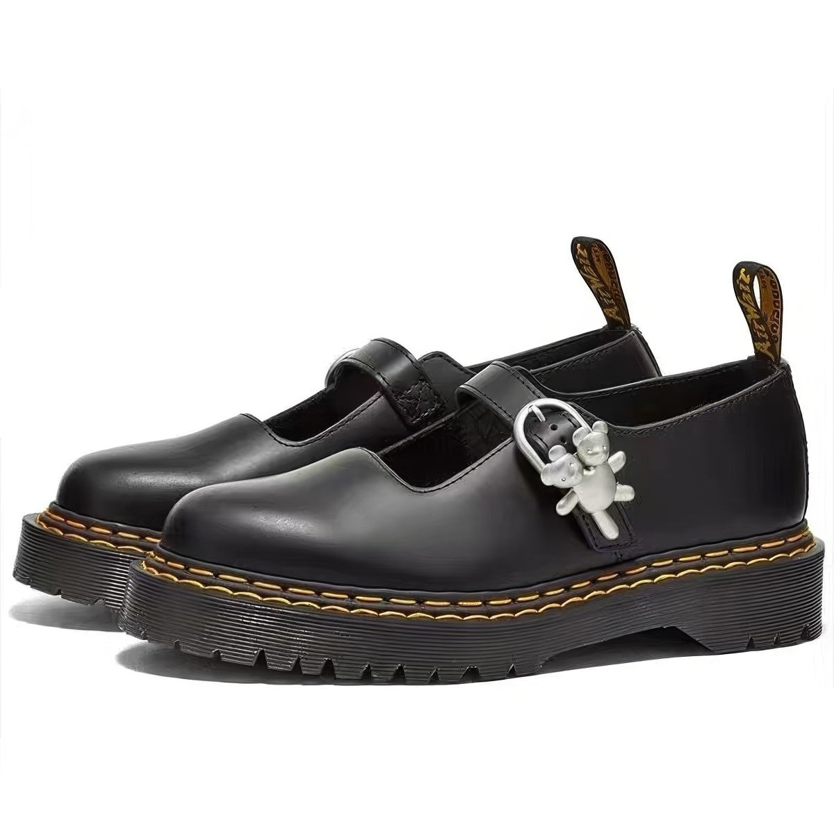 Finished with a thick platform sole, contrast stitching, and a decorative buckle detail