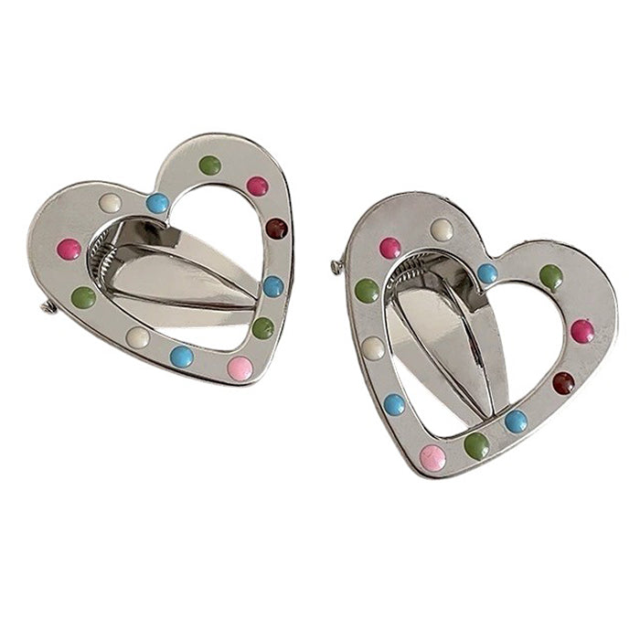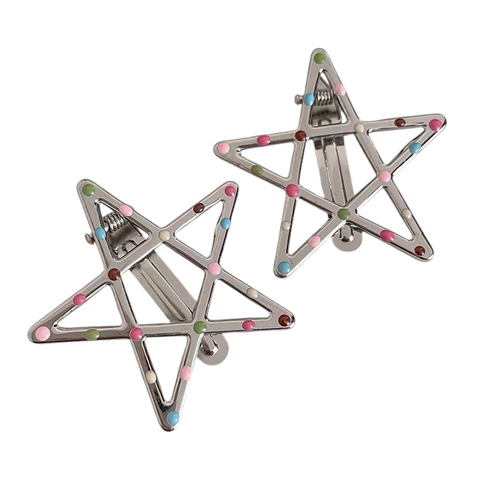 This cute hair clip set features silver-tone star, wave and heart shapes with colorful candy-like accents, adding a fun Y2K aesthetic to any hairstyle
