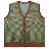 This aesthetic knit vest featuring a burgundy and gray argyle pattern with black accents. The V-neckline, soft knit texture, and relaxed fit give it a nostalgic college feel — perfect for layering over shirts when you’re running late to class