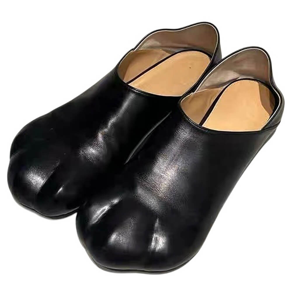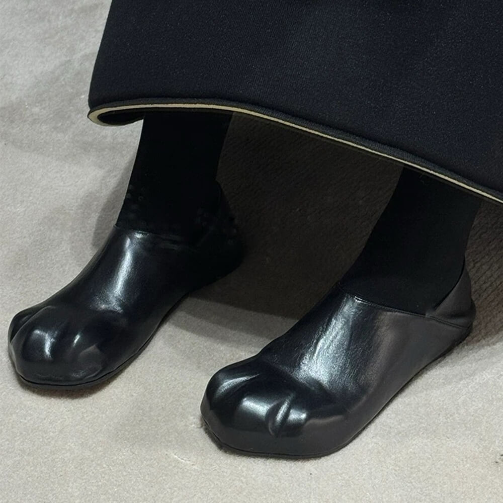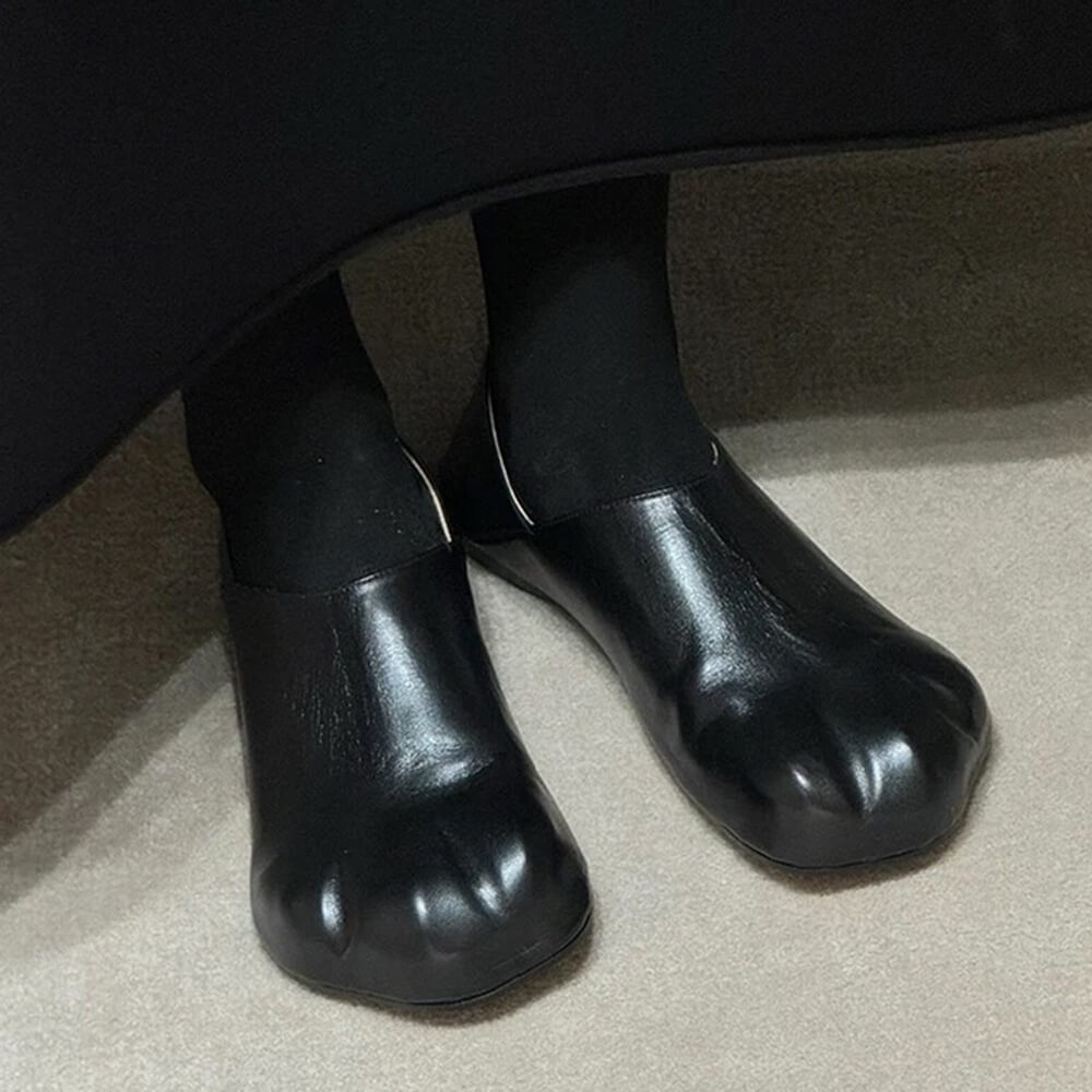 This cat paw loafers featuring a smooth sculpted toe that forms a paw-like silhouette. Designed with a clean upper, soft inner feel and flat sole, offering a minimal shape with a distinctive playful front detail