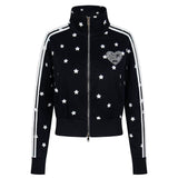 These baggy pants feature a layered star-patterned waistband, adjustable side ties, and a voluminous draped silhouette